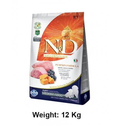 In StockFarmina ND Puppy Medium And Maxi Pumpkin Lamb And Blueberry Grain Free 12 Kg