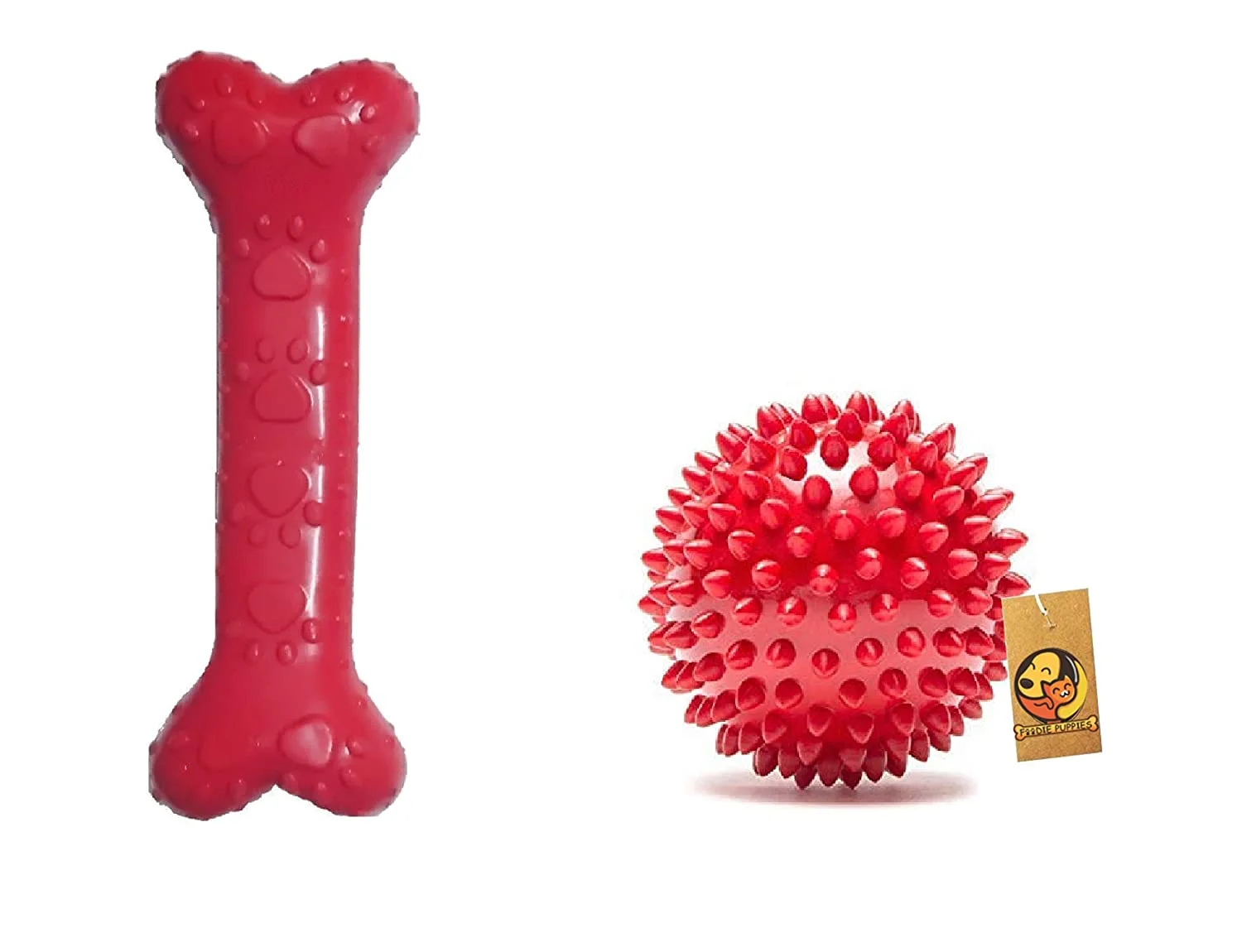 In StockFoodie Puppies Dog Rubber Chew Toy Combo (Spike Ball Toy + Scented Paw Rubber Bone Toy) - Color May