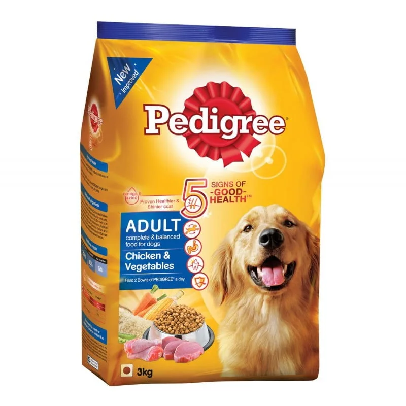 PEDIGREE Chicken &Vegetables is a healthy and complete meal for your adult dog, packed with proteins (from chicken) & vitamins (from vegetables).Features